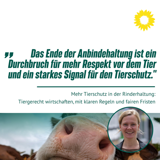 Rinder hätten ein ausgeprägtes Bewegungs- und Sozialbedürfnis, betont Britta Kellermann. Dass Tiere in vielen Betrieben täglich noch immer über etliche Stunden oder sogar monatelang angebunden gehalten würden, sei nicht mehr zeitgemäß und mit den Anforderungen des Tierschutzgesetzes nicht vereinbar. „Anbindehaltung schränkt das natürliche Verhalten der Tiere massiv ein. Das passt schlicht nicht mehr in unsere Zeit“, so die Grünen-Politikerin Britta Kellermann.